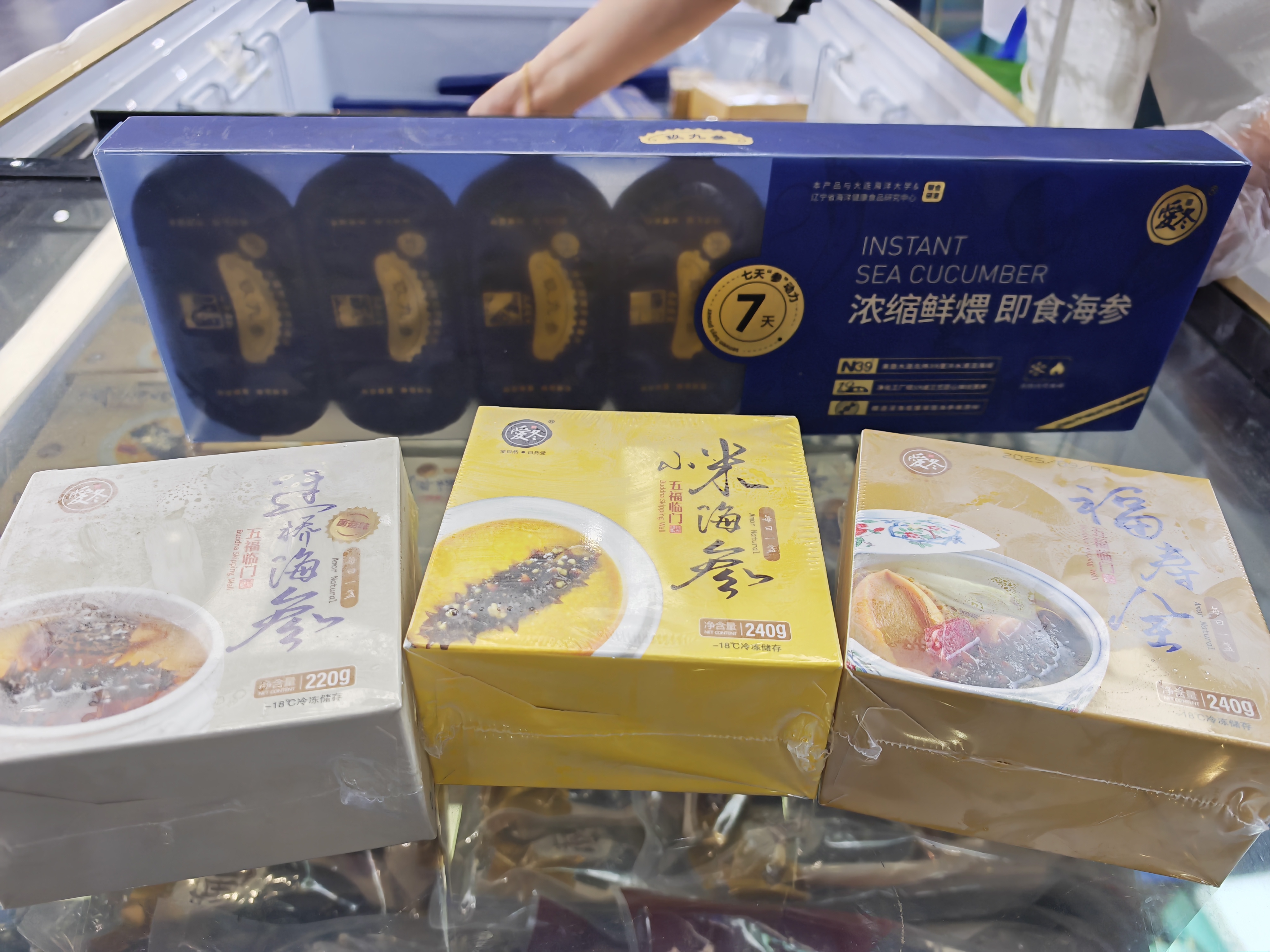展会既集中展现海洋产业的硬核实力✿ღ,也带来了品类丰富的海洋食品✿ღ。一斤左右的紫海胆✿ღ、巴掌大的三倍体生蚝西瓜公主✿ღ、超20斤的黄条鰤……各大海产企业展台上✿ღ,来自黄渤海海域的水产品向世界传递着一张张“蓝色名片”✿ღ。即食海参✿ღ、粉丝虾夷贝✿ღ、生蚝✿ღ、杂色蛤……在试吃专区✿ღ,参展者享受着来自北纬39度的天然馈赠✿ღ。