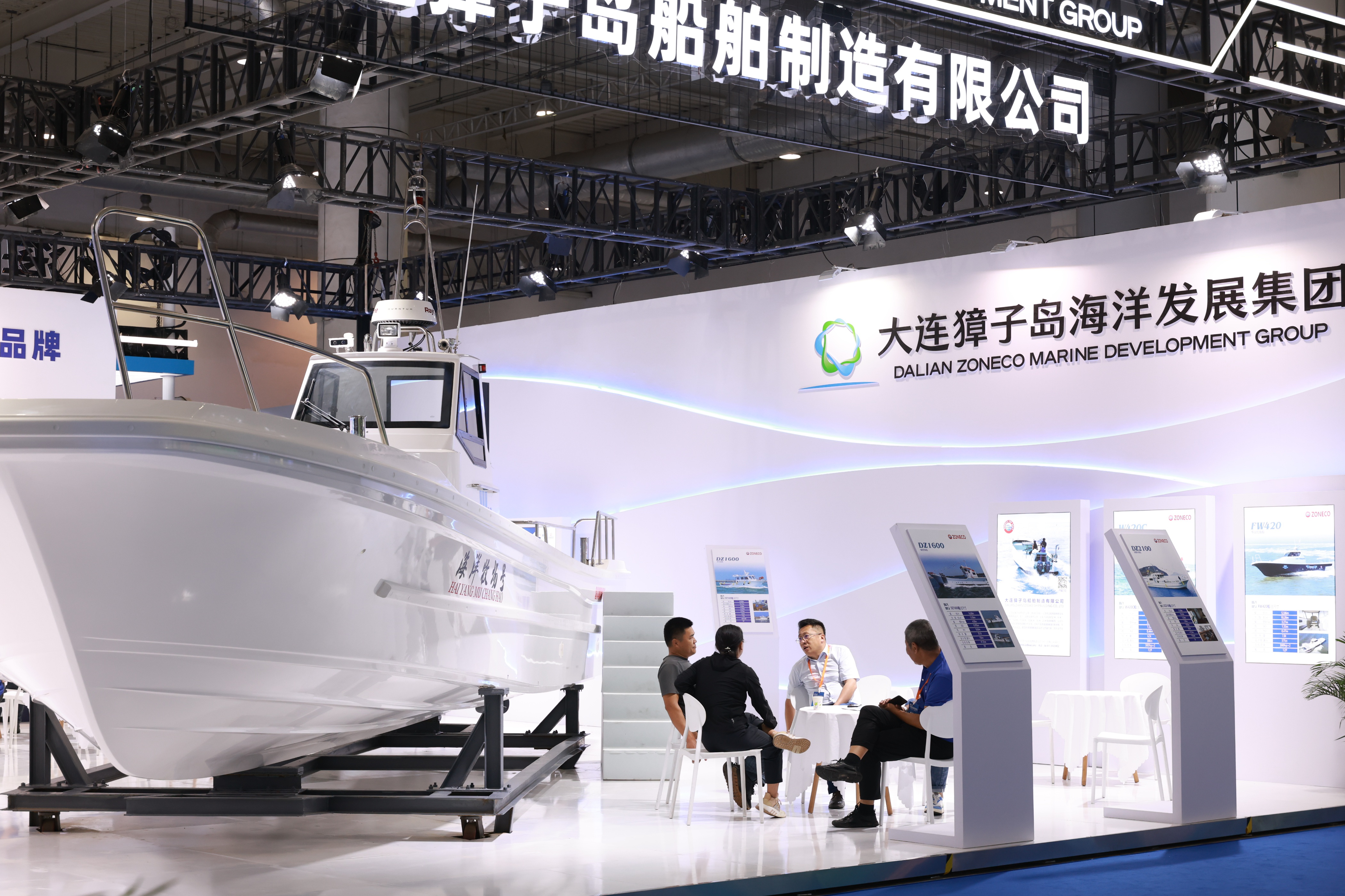 大连石岛工业有限公司首次展出参与研发的南极磷虾捕捞船装备✿ღ,同时集中呈现全链新产品新技术✿ღ。企业负责人透露✿ღ,目前正与辽渔集团积极对接✿ღ,并计划邀请挪威合作方推进深远海渔船项目✿ღ。大连獐子岛海洋发展集团将旗下玻璃钢船“开”进展厅✿ღ,彰显海洋装备制造实力酷游九州官网✿ღ。